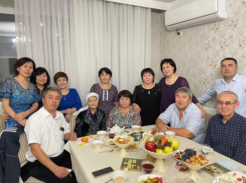 нан су ішіп отырған нағыз бақытты ана. Өкінішке орай 2018 жылы тағдырдың жазуымен жолдасы Әбілқайыр ақсақал дүниеден озды.