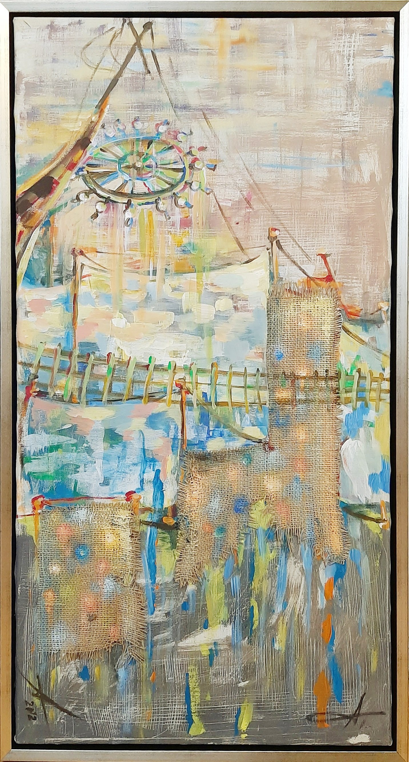 Бұл ретте, Гүлмарал тек ескі қапшықтарға жүгінеді. Қазіргі уақытта мұндай қапшықтардың басқа елдерден көптеп әкелініп жатқанына қарамастан, автор өз жұмыстарында қазақ ауылдарының сарайынан табылған, тұрмыста қолданылып жүрген дәл осы ескі қапшықтарды ғана пайдаланады. Суретші асқан ұқыптылықпен бұл қапшықтарды жуып, жыртық жерлерін жамайды. Кейде екі қапшықты ортасынан қиып, үлкен кенеп шығару үшін оларды біріктіреді. Автордың ойынша, тарихтың ізі қалған мұндай материал қайталанбас көркемдік қиялдың туындауына себеп болды. Бұл бағыттағы біресе қанық жарқын түстер, біресе жұмсақ реңктер алмасып отыратын, акрил, майлы бояу, аралас техникамен салынған, шаршы, төртбұрыш сияқты геометриялық фигуралардың үйлесіміне негізделген абстракциялық суреттер ерекше назар аудартады.