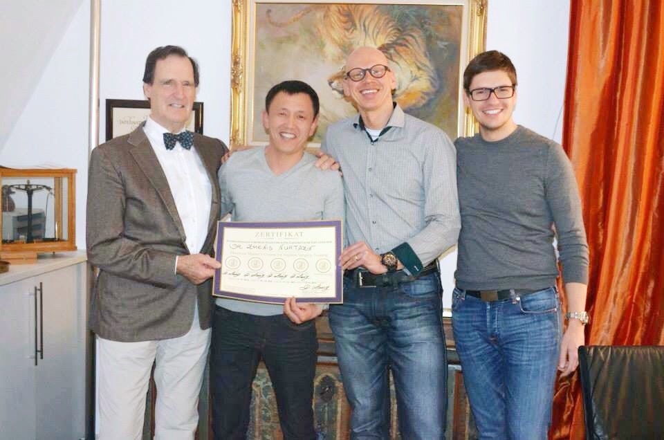 Спустя год в 2013 году Женис Муратбекович летит на повышение квалификации в Германию город Кельн, к доктору Манфренд Лянгу (выпустившему свою книгу фантомного курса симулятора дентальной имплантации).